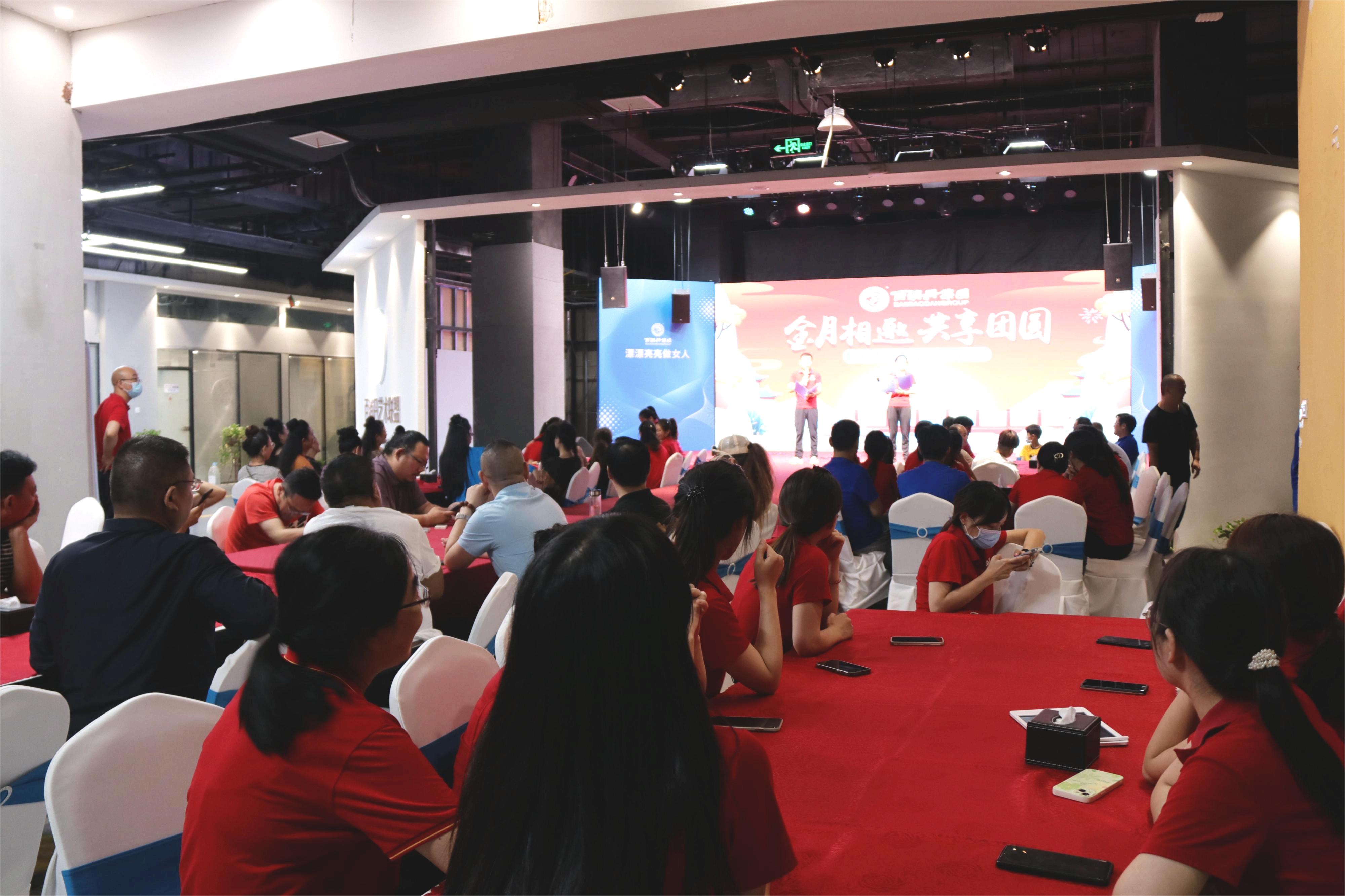 金月相邀, 共享團(tuán)圓。9月8日下午,百消丹集團(tuán)中秋聯(lián)誼會(huì)在百消丹藝術(shù)聯(lián)盟俱樂部演播中心隆重舉行。集團(tuán)公司全體員工與藝術(shù)聯(lián)盟特邀嘉賓們歡聚一堂,共品美食,共敘友誼,喜迎中秋。